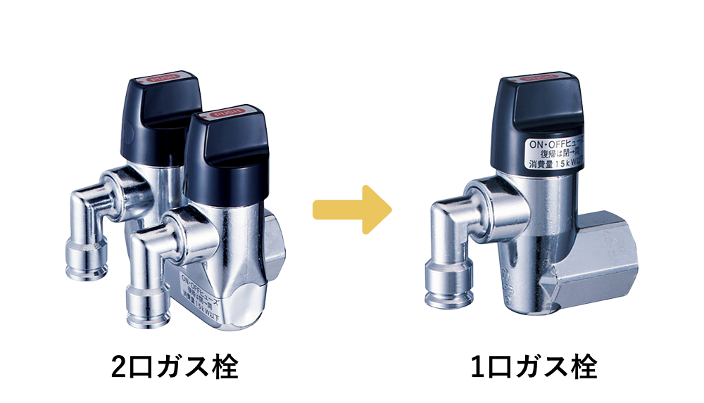 →使用するガス器具よっては、2口ガス栓から1口ガス栓へ交換する
