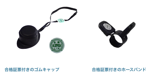 ◆ヒューズガス栓のホースエンド型の場合は、専用のゴムキャップ(LIA検査合格品)を取り付けてホースバンドで固定する