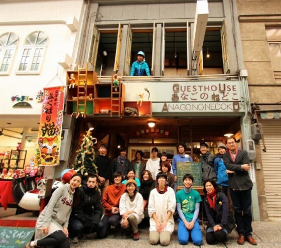 尾道空き家再生プロジェクトの再生物件の一つ、尾道ゲストハウス「あなごのねどこ」前で。